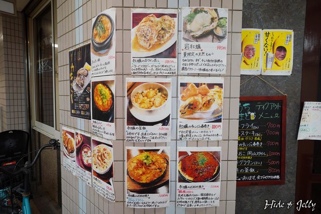 門口的菜單貼著各種牡蠣料理,還有兩種風味的「牡蠣お好み焼き」(大阪燒),看起來很