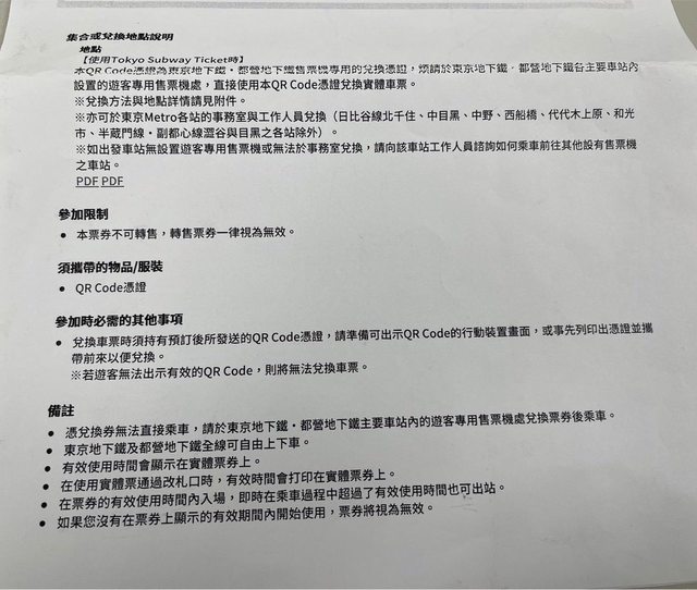 1. 讓售品項:東京地下鐵72小時券 1套2張 一起買