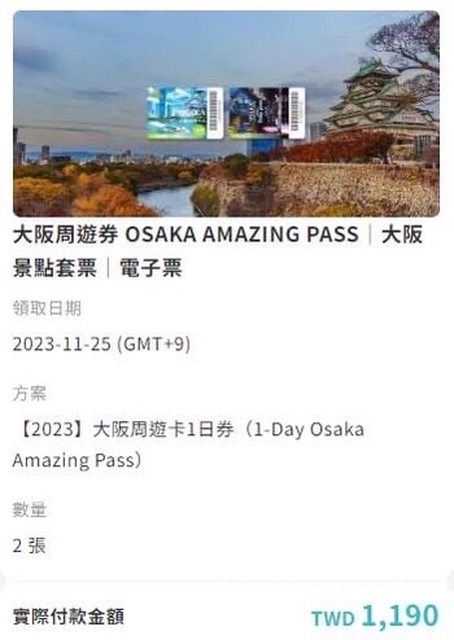 大阪周遊券OSAKA AMAZING PASS*2