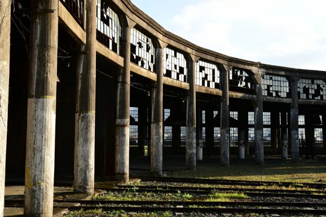 入內,但卻展現出不同於現役扇形車庫的末日氛圍。車庫圓弧形的外觀加上獨特的廢墟感
