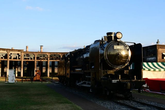 車庫前靜態展示著日本國鐵9600形蒸汽機車的29612號車,1919年製造出廠後曾配置在長