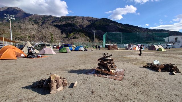 位在甲府盆地北側正對著富士山的三石露營場