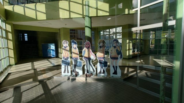 校舍內有人物立牌,可惜這天沒開放見學