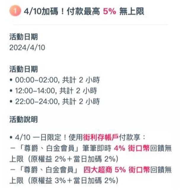 標題[資訊] 4/10 日本刷街口(可能) 最高5%無上限