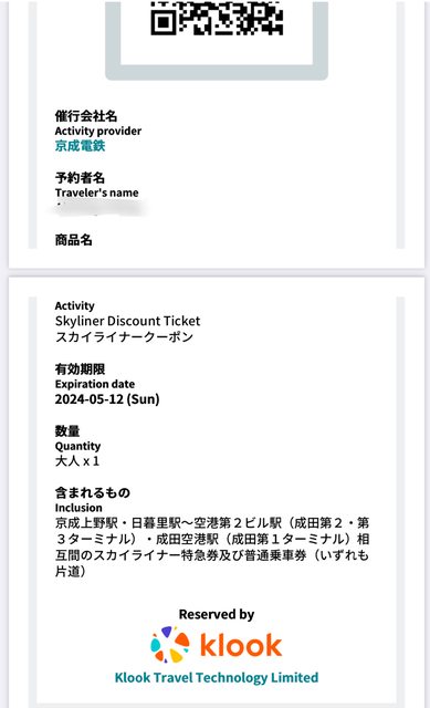 1. 讓售品項 : Skyliner成田機場到上野單程KLOOL兌換券1張~已售出