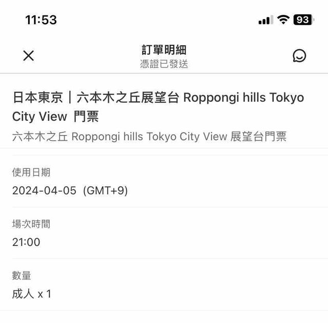 1. 讓售品項:六本木之丘展望台入場券1張 時間 4/5(五) 21:00