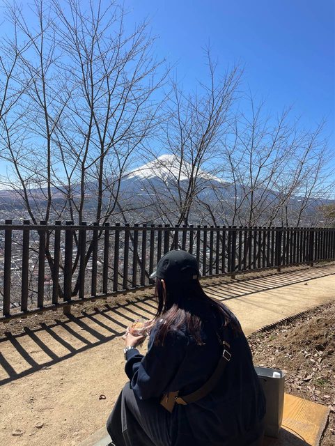 大家都是想拍忠靈塔跟富士山的合照,所以觀景台很多遊客,我們拍完就去人少的地方坐