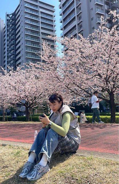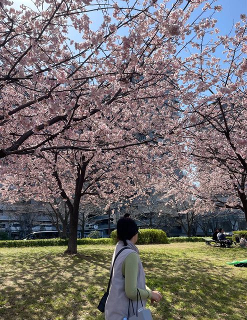 一整排超過二十顆的櫻花樹,天氣晴朗拍隨便都好看,真的是開心到不行
