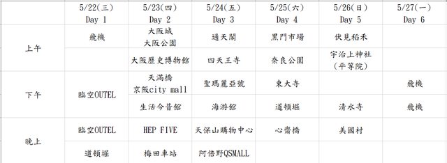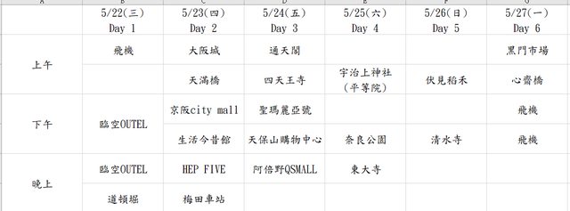 → craig : 可以吃個炸串,day5就宇治和伏見稻荷,奈良改day4 04/08 00:24