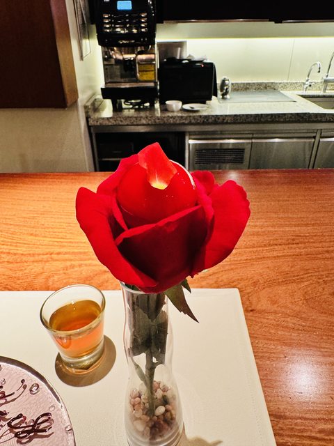 這家會送一個很特別的甜點,玫瑰花狀的。
