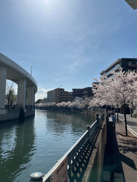 河邊的櫻花幾乎滿開,幾棵還吹雪了