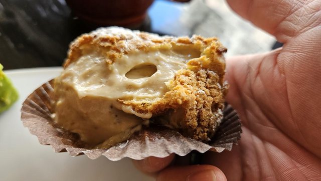 芙本身餅皮的口感,還會配上那個花生味超濃的波蘿麵包皮,裡面的卡士達醬很濃郁而且