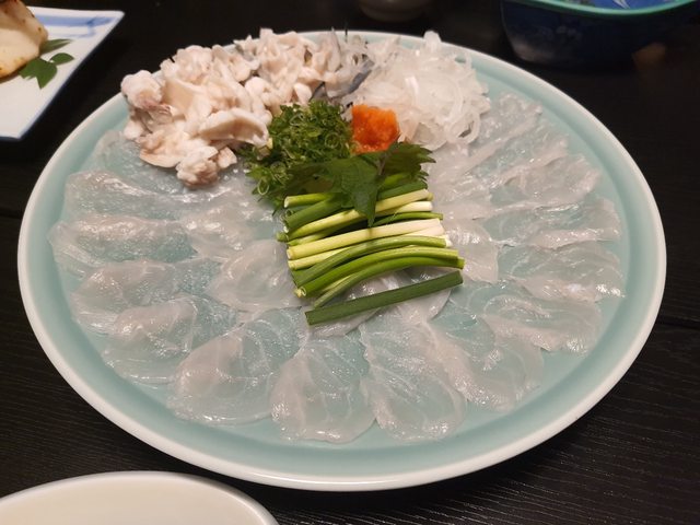 晚上用餐加點了河豚生魚片