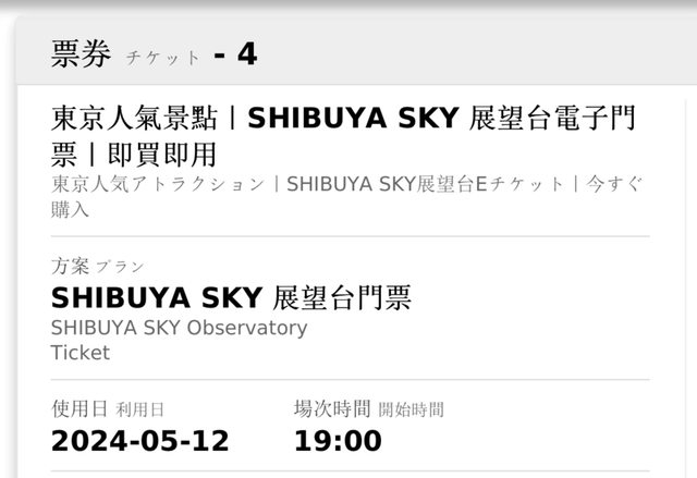 標題[讓售] SHIBUYA SKY展望台門票