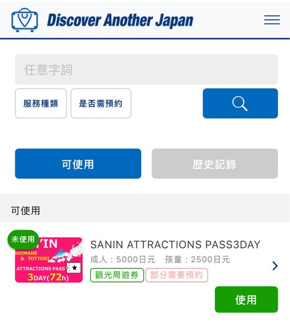 本次安排山陰之旅時,行前從其他網友的分享得知有Discover Another Japan Attractio