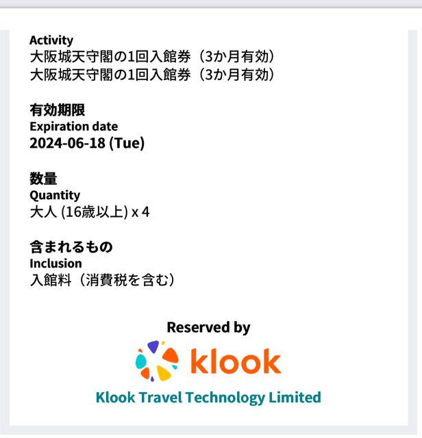 標題[讓售] 售大阪城天守閣門票*4