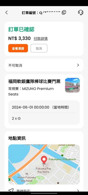 標題[讓售] 06/01軟銀vs廣島 福岡巨蛋門票×2