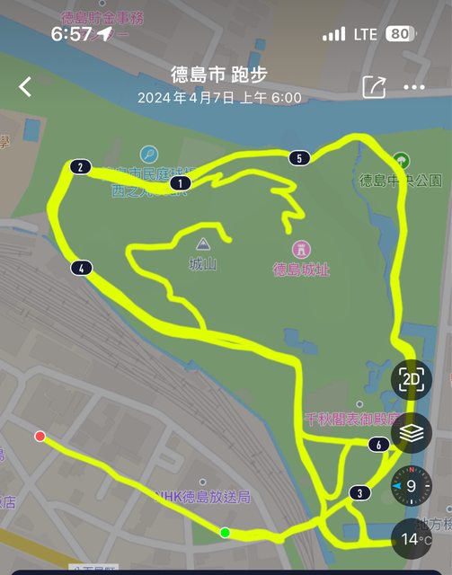 早上5:30起床,我還去旁邊德島中央公園慢跑,櫻花很漂亮,跑上城址小山丘,上面也是