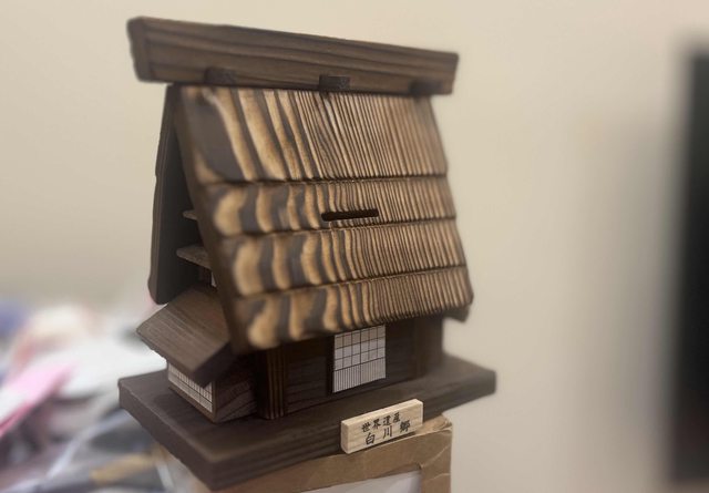 回來時還特別買了一個合掌村造型的存錢筒,