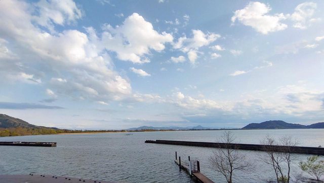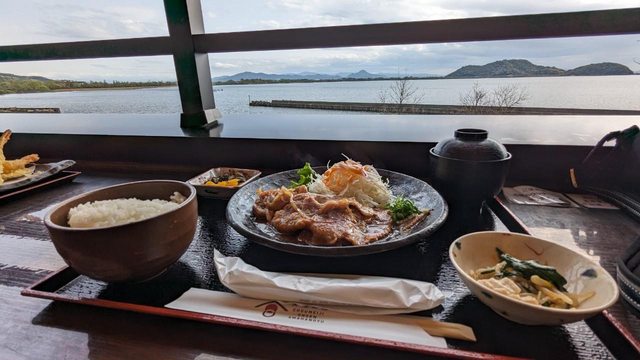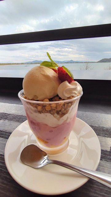 二樓是餐廳與休息區 戶外用餐區面對琵琶湖 一邊看湖景一邊吃東西十分的愜意