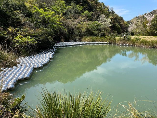 稍微休息後,到戶外走走,園區內有許多藝術作品,包括黃南瓜。