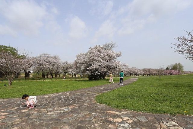 不過這裡的櫻花-已經過了盛開的季節,開始櫻吹雪及開出綠芽