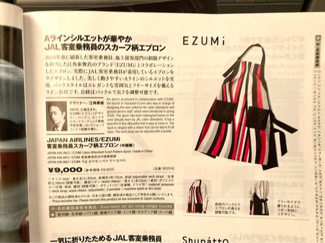 機上日本航空機上免稅品目錄裡面,有販售(正版)日航空姐圍裙,一件日幣9000元,如果