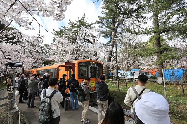 除了鐵道櫻花隧道以外,芦野公園內櫻花在當天也是滿開