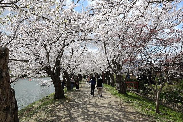 入園後,沿路滿開櫻花,不過先去登記繳錢游船