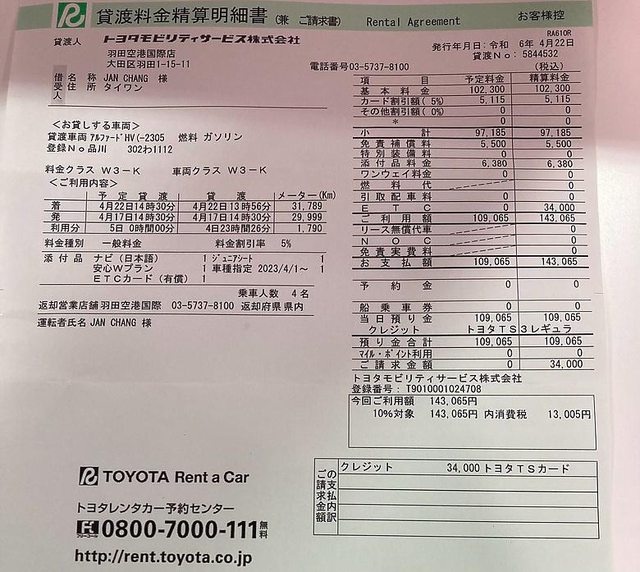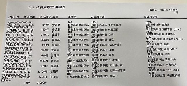 六天五夜 東京青森來回,ETC + 租車 + 油錢 總共花費 35526元
