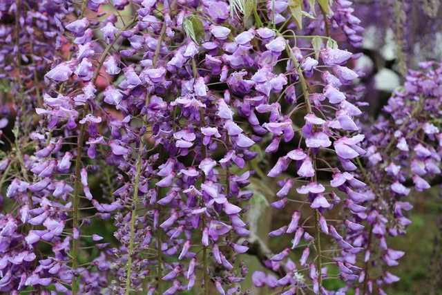 紫藤花與八重櫻盛開