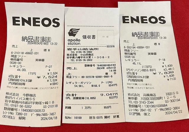 日本油價有含10趴消費稅,扣掉消費稅其實跟台灣差不多。加油部分,總共加日幣2萬441