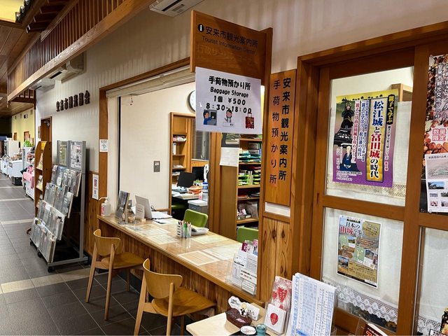 下車馬上把大行李推去出站右轉的觀光案內所寄放(一件500円、18點前要領取);車站