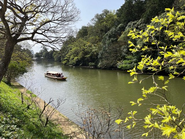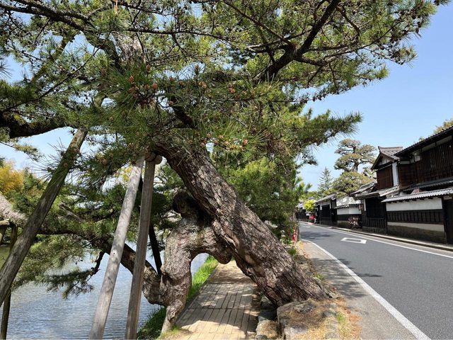再沿著護城河岸、松樹下的步道往松江歷史館悠閒地走去,一早已有許多遊客搭乘堀江遊