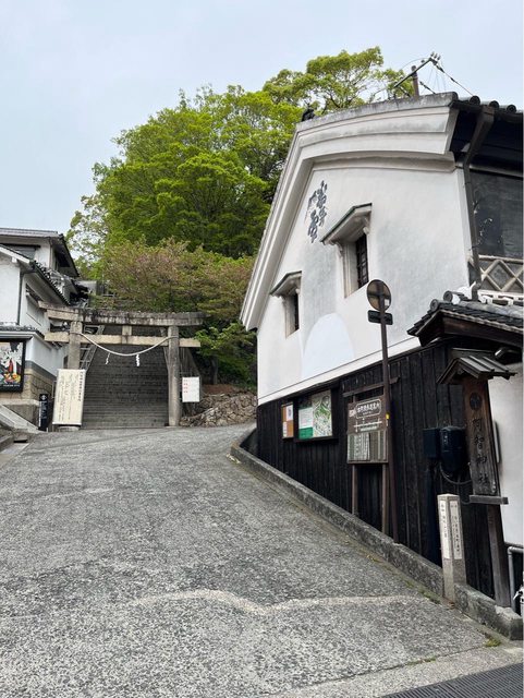 要爬幾段樓梯才能到神社,主祭神為宗像三女神。從繪馬殿望出去的景色則略被擋住。