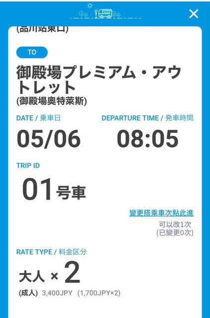 品川到御殿場premium outlet車票