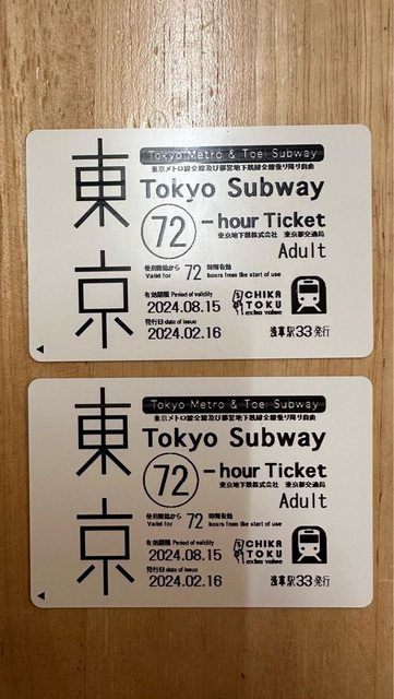 標題[讓售] 東京地下鐵72小時通票 兩張