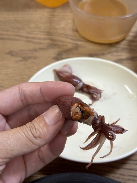 帶卵的螢烏賊一口吃進去直接在嘴裡爆漿,