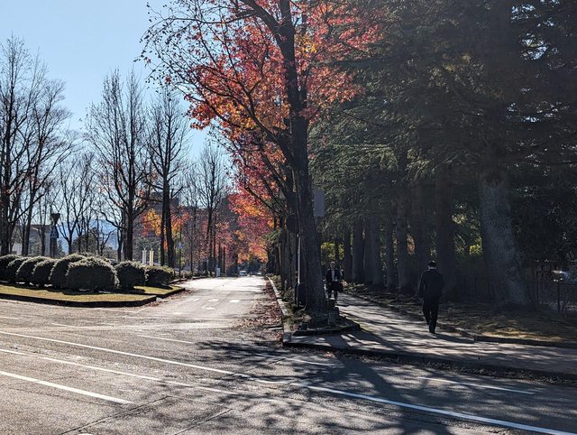 從東神門走出尾山神社,發現一條很美的楓葉路。雖然幾乎快落完葉了,不過可以想見在