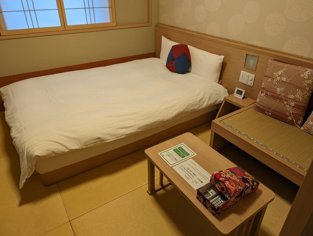 這次選擇是一般的雙人房。其實房間滿小的,大概是 15 平方公尺多。尤其跟前兩晚和倉