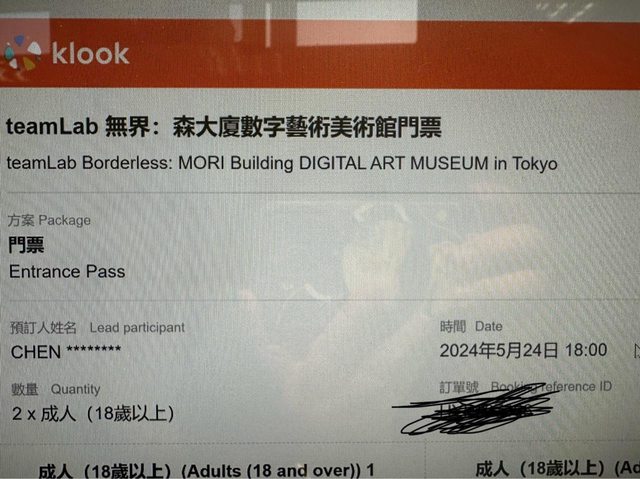 標題[讓售] 5/24 Teamlab麻布台 晚上18:00 門票2張