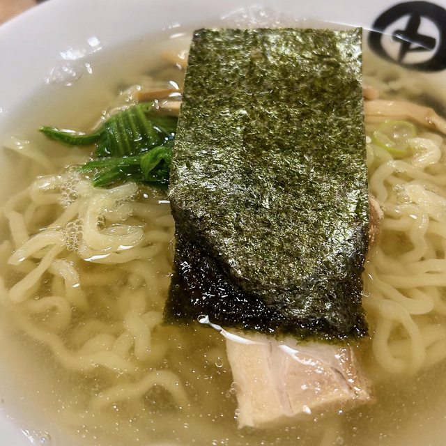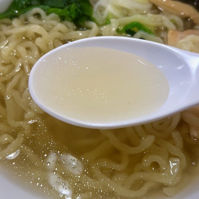 7點到10點限定的朝ラー,晶瑩清澈的海瓜子黃金高湯,有彈性的中捲麵,簡單的菠菜、