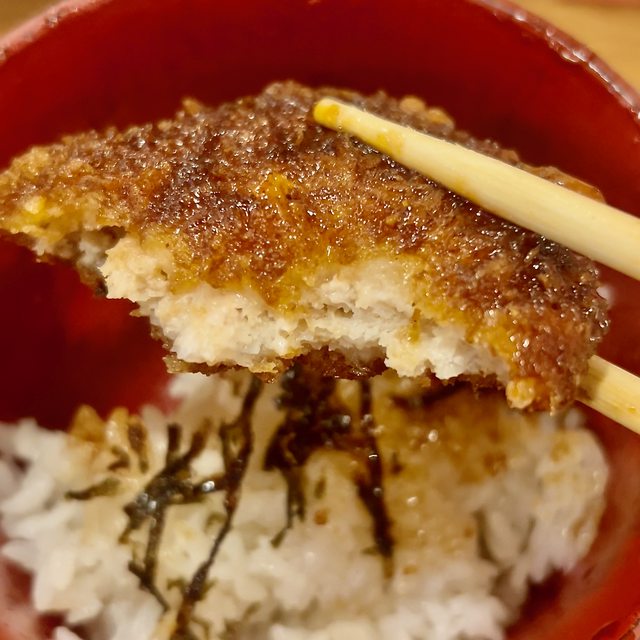 迷你豬排飯可以選擇醬汁、味噌、醬油等口味,豬排沾滿醬汁雖然偏鹹,但外皮依舊保持
