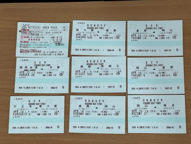 先附上這次預約的車票,因為線上只能先劃位6趟,其餘就是到綠色窗口劃位