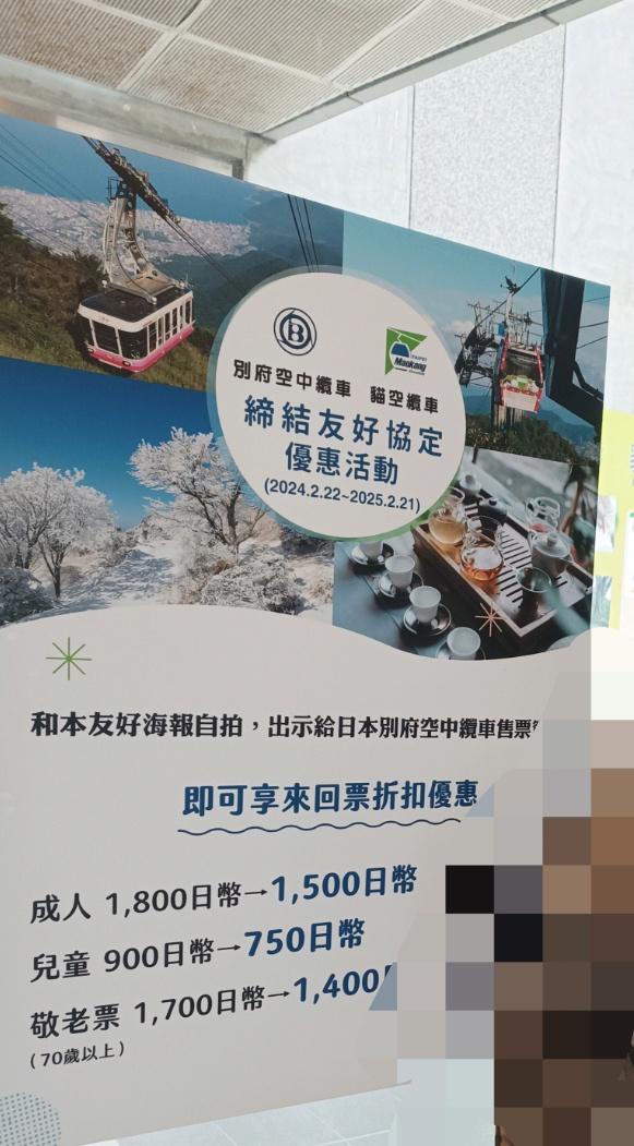 祝活動,到2025.2.21之前在貓纜跟友好協定海報拍照,到別府纜車出示畫面的話就可以