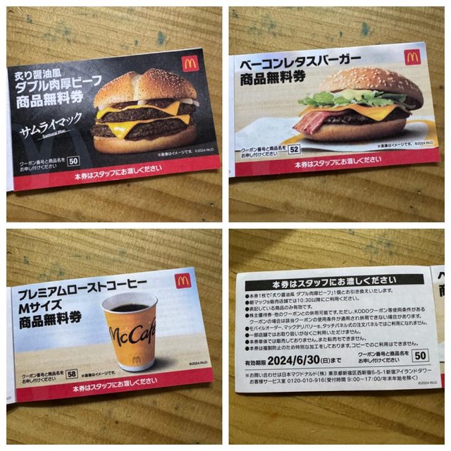 年初在日本買麥當勞福袋送的兌換券,有兩個漢堡和一杯咖啡還沒換,期限只到6/30,在6/30前能兌換的版友歡迎站內信