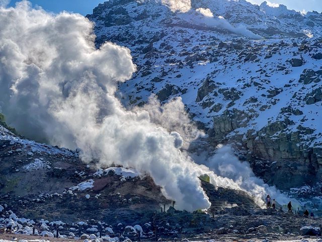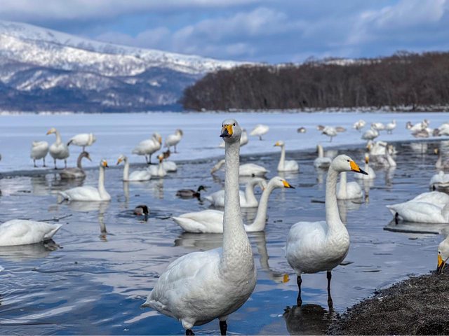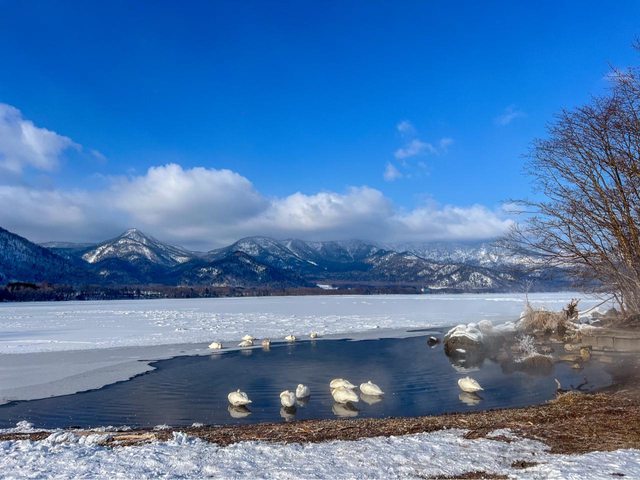 之後抵達了砂湯,此處是拍攝從西伯利亞前來過冬天鵝的絕佳場所,隨後前往硫磺山,欣