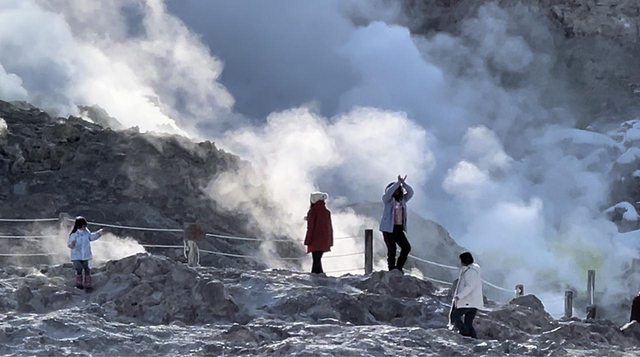 賞壯觀的火山地質景觀卻也遇到在現場大跳科目三的中國遊客...。