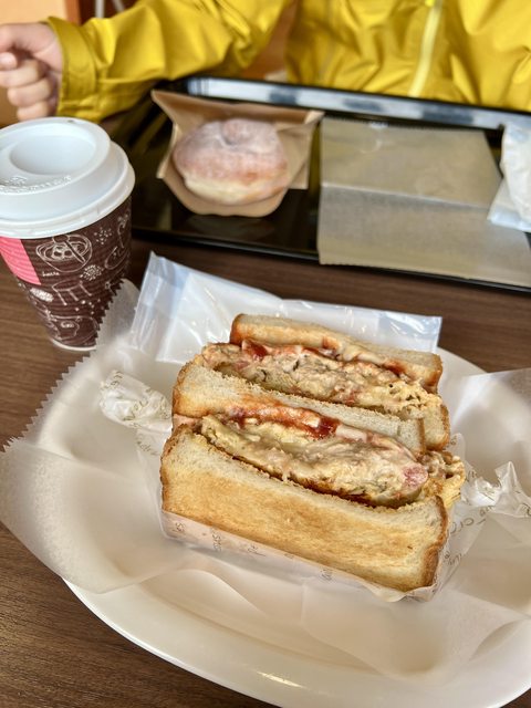 買了現做熱三明治、甜甜圈、咖啡,好吃~