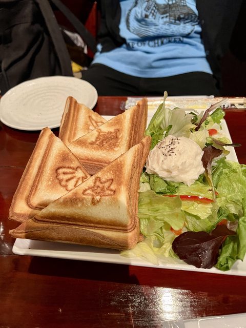 除了兩種熱壓吐司 (火腿起司、蛋沙拉)、咖啡外,